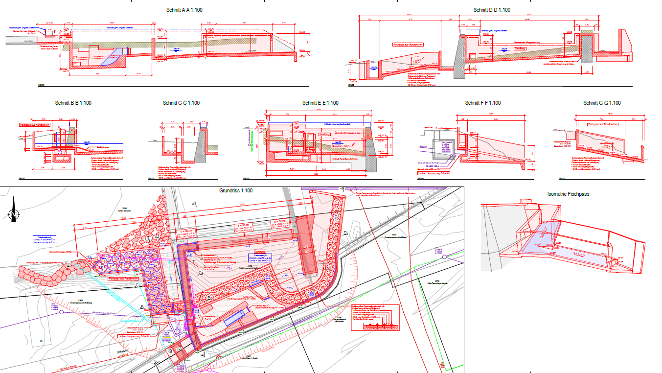 Die wissenschaftlichen Erkenntnisse bedienten maßgeblich die Umsetzung. Die technische Beurteilung der Anlage bestätigt die Einhaltung ökologischer als auch hydraulischer Anforderungen und Randbedingungen aus dem Regelwerk DWA-M 509 und der Schweizer Gewässerschutzgesetzgebung.